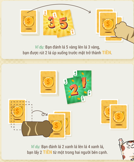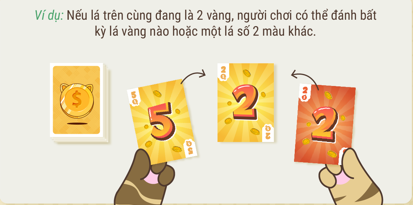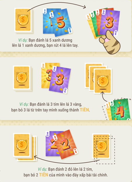 Nếu không muốn hoặc không thể đánh bài, bạn rút 1 lá lên tay và kết thúc lượt. Không giới hạn số lượng bài trên tay.