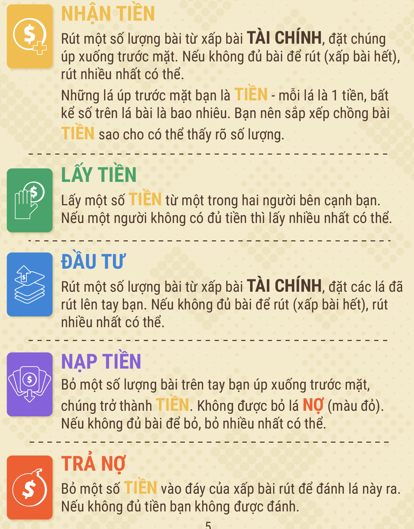 - Khi xấp bài TÀI CHÍNH hết ở cuối lượt một người: Ngay lập tức kết thúc trò chơi.